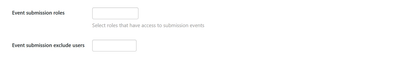 In the MEC Settings, locate Event submission roles. You can select from WordPress roles or BuddyBoss-specific roles: Moderator, Organizer, and Member. You can also use the Event submission exclude users’ field to bar specific individuals from creating events.