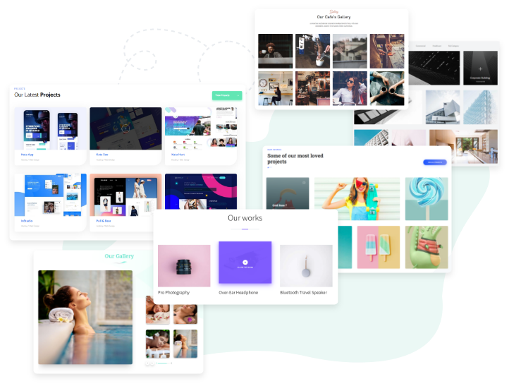 Kata Pro is equipped with amazing tools for designing your portfolio and galleries. In Kata you can design all your desired layouts without needing to any other third-party plugins.