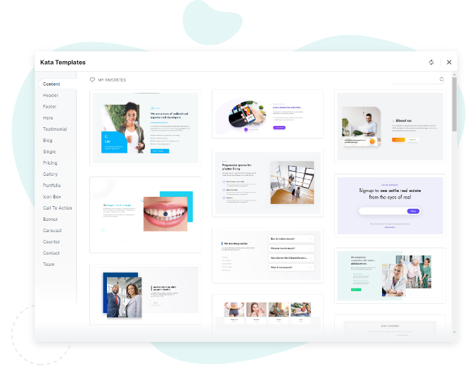 If you are wondering how to design a website in a couple of minutes, the Kata Pro Template Library is the solution. You can choose your desired sections among hundreds of section templates and import them by a single click.