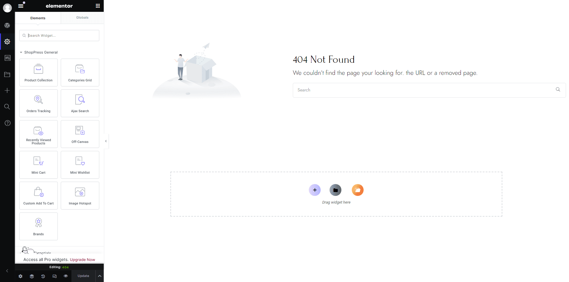 Once you’ve entered the 404 page builder, you can start customizing your error page.