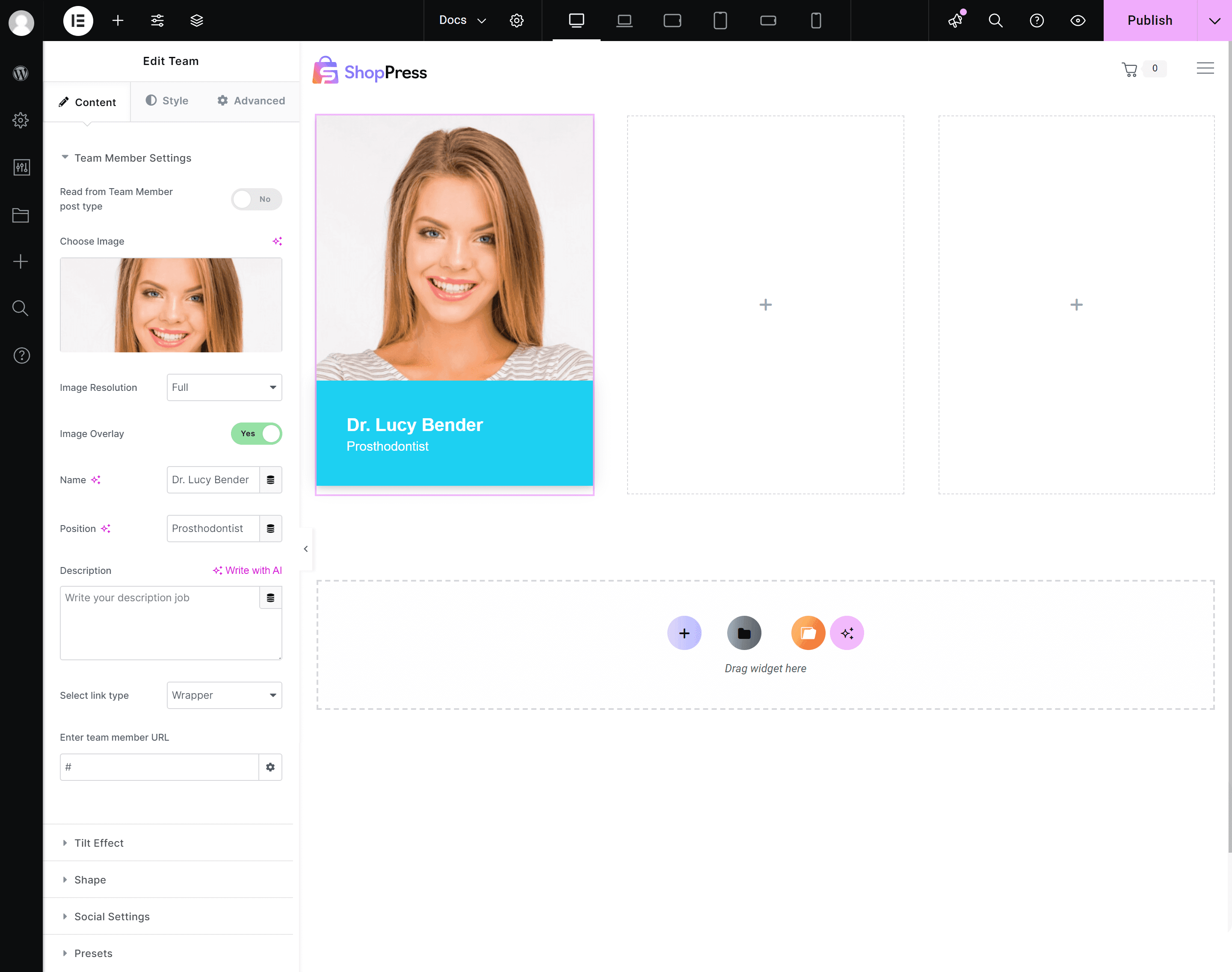 - Profile Picture: Upload a high-resolution image of the team member. Ensure that the resolution is set appropriately to display well on both desktop and mobile.