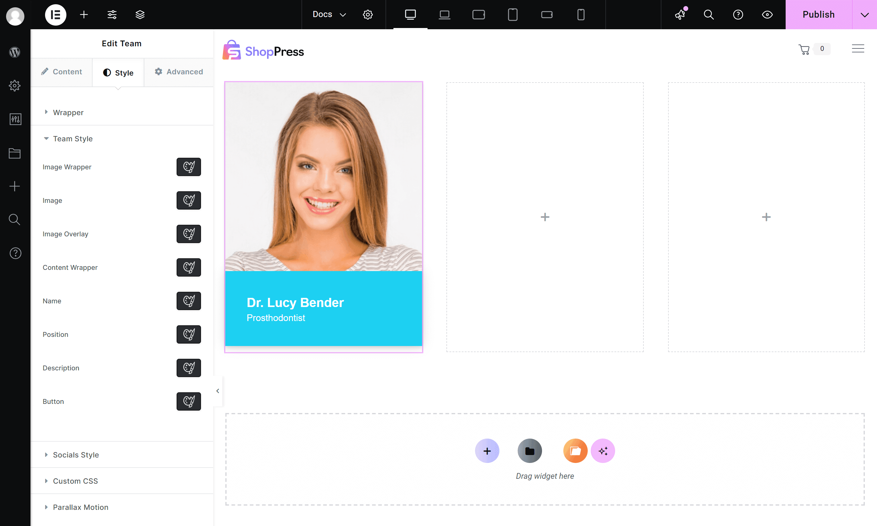 Note: To ensure the Team widget displays your team members, make sure the Post Type option “Read from Team Member Post Type” is enabled in the widget settings.