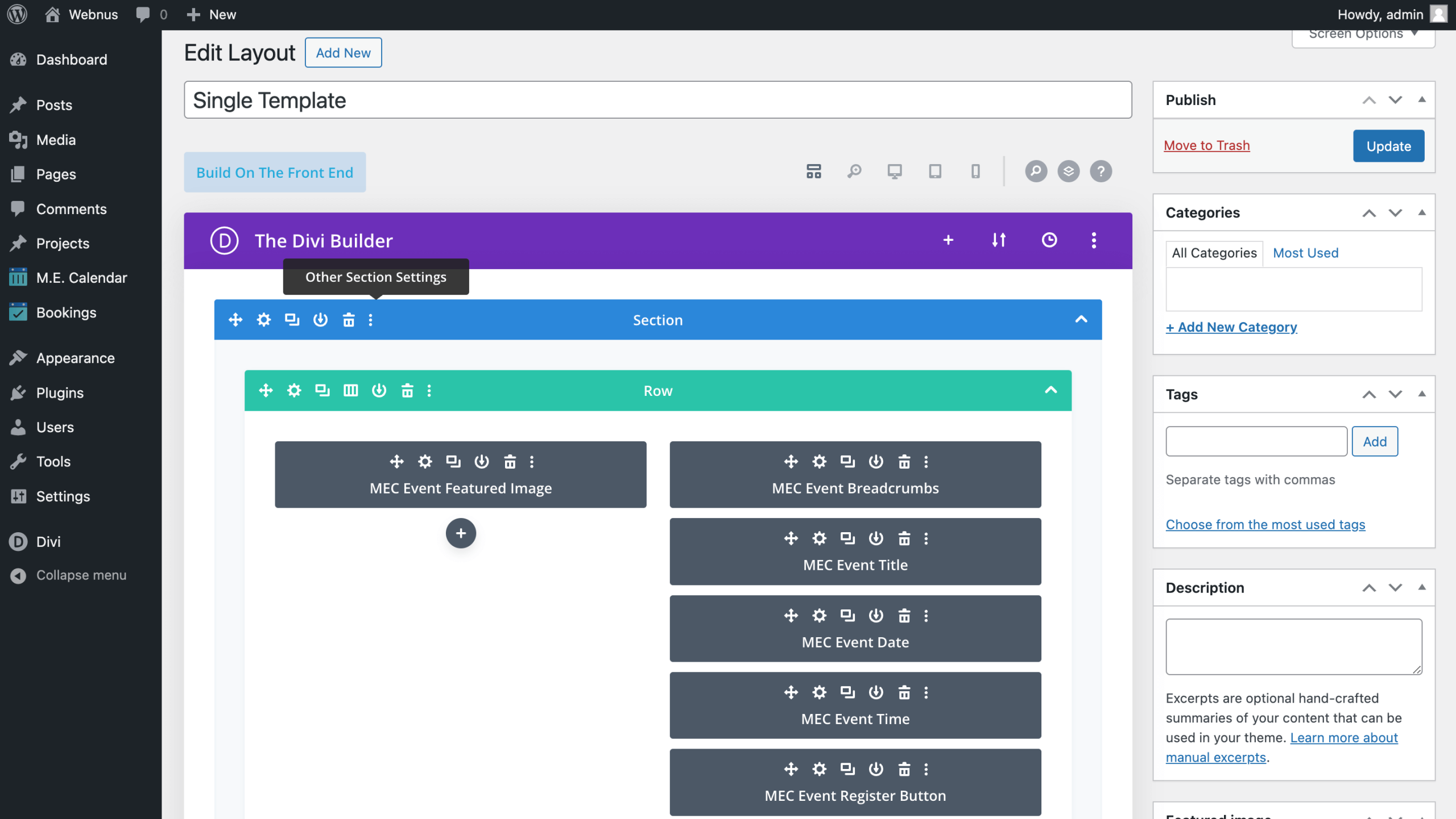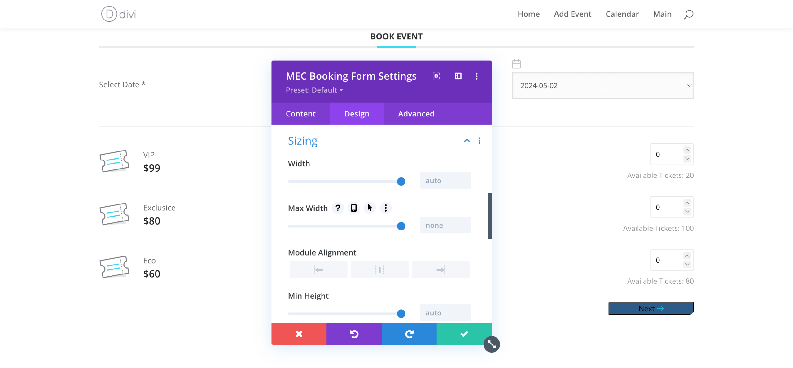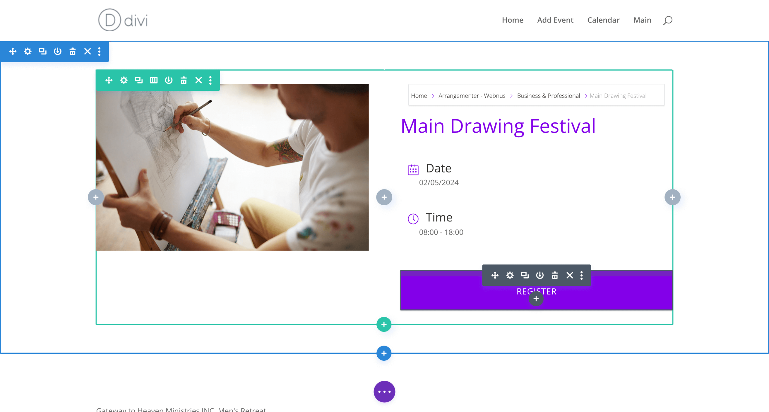 With the help of this add-on, you will be able to create a ready-made template for all your events, add styles that you like to your single events, and change the layout in Divi page builder with a single drag and drop. Also, if there is a widget that you do not like, you can delete it and use other widgets in the single event of your website. You can use all the widgets of the single event separately and create any section that you want with whatever size that you want. You can also set an animation for each widget.