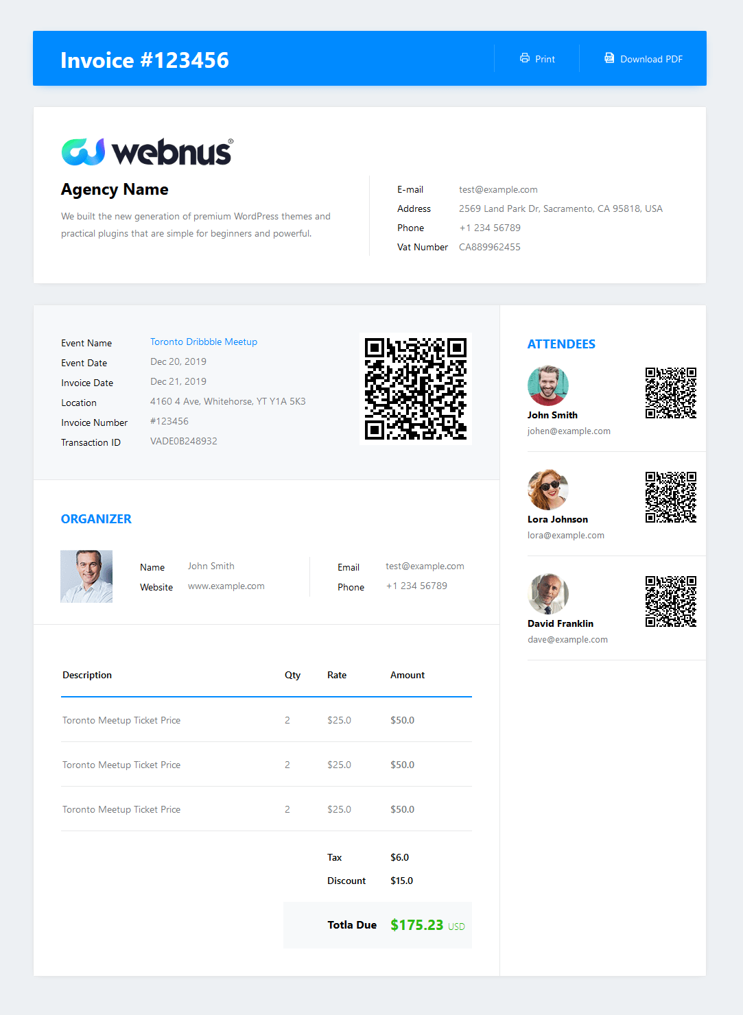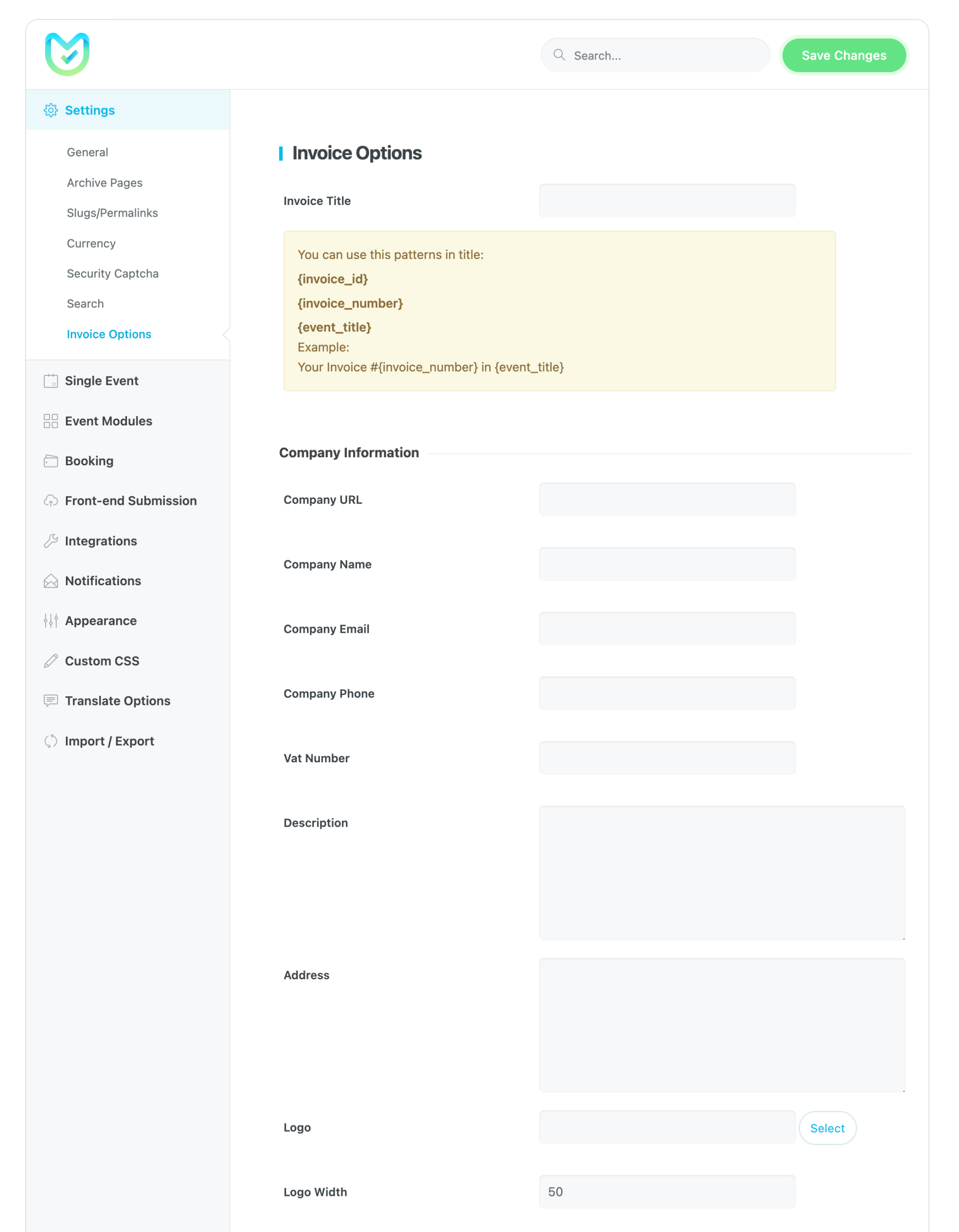 Provide your company information like VAT, Address, Logo, and more in invoice to your users in PDF.