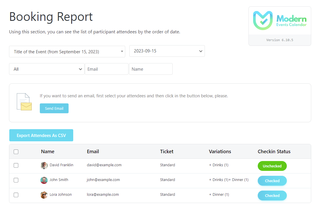 List of Checked Attendees