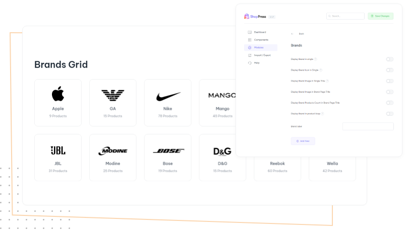 We are thrilled to introduce the ShopPress Brands Module - your ultimate solution for showcasing your brands in a clear and attractive way on both your single product page and shop archive page. With just a few clicks, you can easily display your brand logos or labels, allowing your customers to identify which brand they are purchasing quickly.