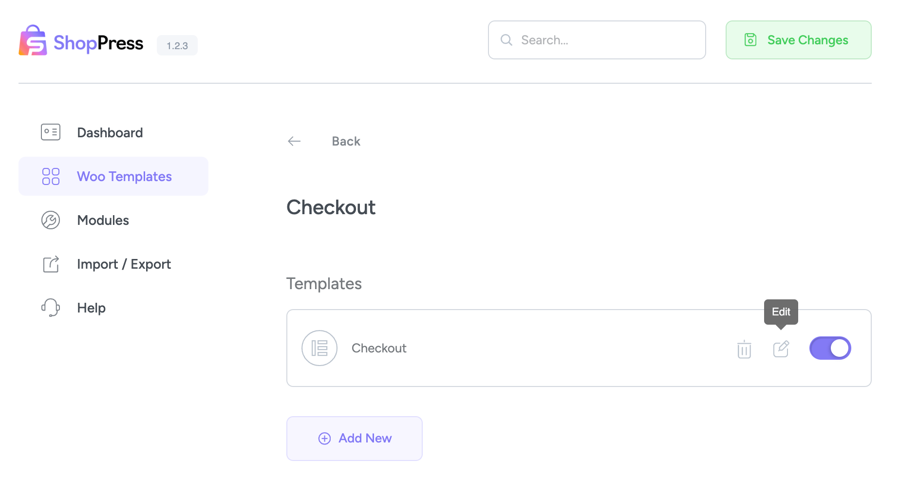 After adding the template, click on the toggle to make the template ready for editing. Save the page once to save the settings, and then click the “Edit” button to be redirected to the Elementor page builder, and the process of customizing your checkout page begins.