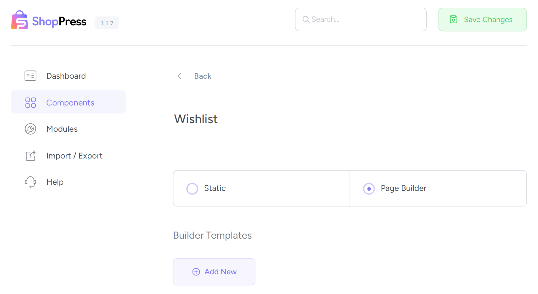 To enable the wishlist edit page, follow these steps: First, go to the WordPress dashboard menu and select ShopPress > Components. Then, enable the Wishlist component. Once you do that, you’ll see the config button is activated, which you can click on to enter the wishlist component settings. With these settings, you can customize your wishlist page according to your preferences.